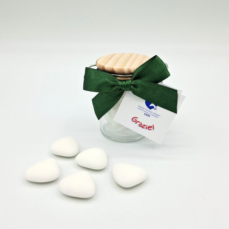 DettagliGioco del tris in legno (7,2x7x2,6 cm) con stampa personalizzata IOSTOCONUGI con abbinate n° 5 gelatine alla frutta. ...