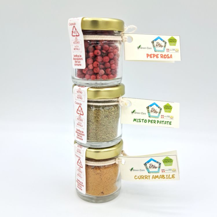 DettagliMacinasale in vetro con tappo in plastica (cm 13,5x4) contenente sale rosa dell'Himalaya e fiori eduli prodotto da ...