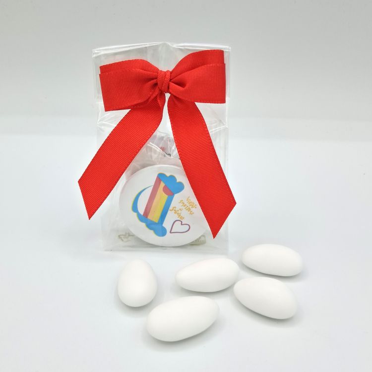 DettagliSpilletta con grafica VIETATO SMETTERE DI SOGNARE confezionata con nastro di vari colori, minidépliant e n° 5 ...