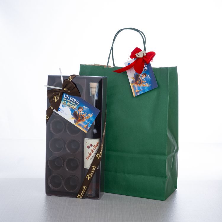 DettagliConfezione regalo (cm 12x26x4) composta da: Bottiglia di Ratafià di ciliegie 10 cl 12 bicchierini ...