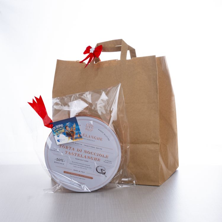 Confezione regalo contenente una torta di nocciole in scatola di latta ...