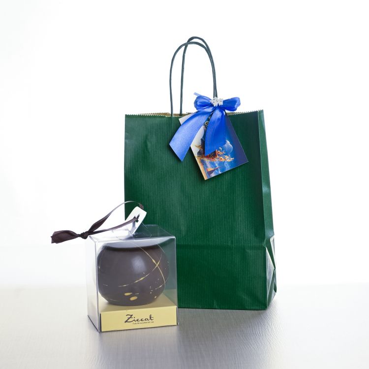 Sfera di cioccolato* extra fondente in confezione trasparente Ziccat (Torino) 100 g Ogni confezione regalo è ...
