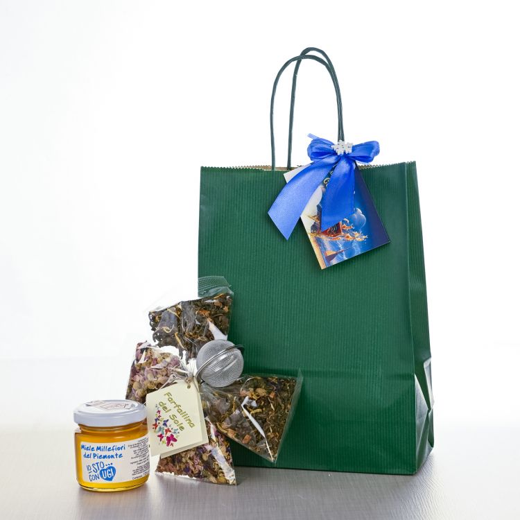 Confezione regalo contenente: Té/tisana di Natale con filtro in metallo Erbe di Montagna (Pianfei) ...