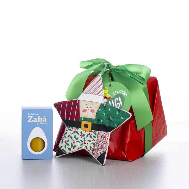 Sacchetto avana contenente: Pandoro UGI - Bonifanti 750 g Vasetto di zabaione Zabà* classico Alberto ...