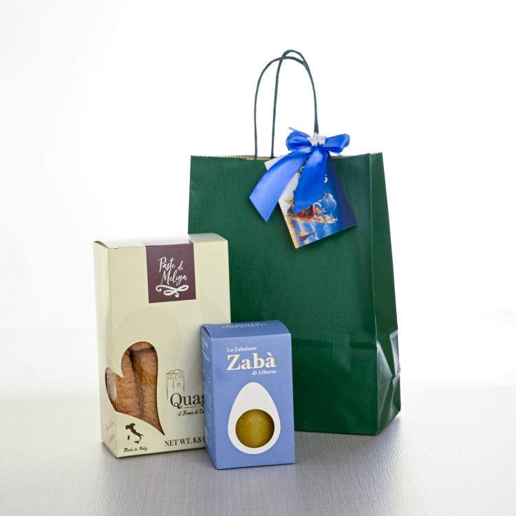 DettagliConfezione regalo composta da: Bottiglia di brut metodo Charmant Chardonnay Boeri Wines 75 cl Brichet cacio e pepe ...